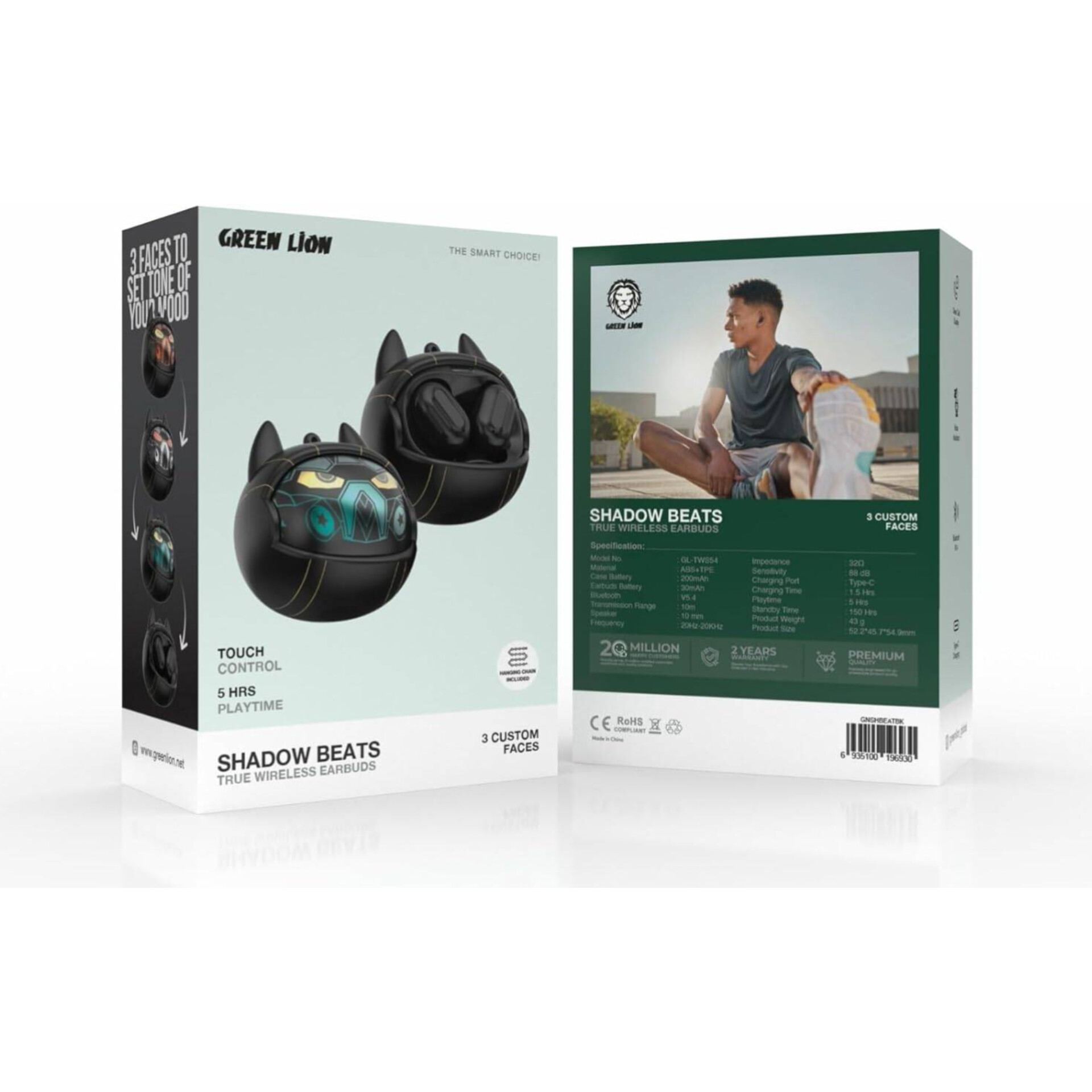 نام محصولShadow Beats True Wireless EarbudsبرندGreen Lionطراحی- طراحی منحصربهفرد با ظاهر الهامگرفته از سر گربه با گوشهای برجسته  - موجود در رنگ مشکی و نسخهای با رابط کاربری نورانی آبی  - ظاهر مدرن و جوانپسند با تمرکز بر جذابیت بصریویژگیهای کلیدی- کنترل لمسی (Touch Control)  - ۵ ساعت زمان پخش مداوم  - قابلیت انتخاب از بین ۳ ظاهر سفارشی (Custom Faces)  - اتصال بیسیم با پایداری بالا  - کیفیت صدای شفاف و باس تقویتشده  - طراحی ارگونومیک برای راحتی در استفاده طولانیمدتمزایای برند- بیش از ۲ میلیون کاربر جهانی  - پشتیبانی از ۲۱ اپلیکیشن اختصاصی  - ۵ سال تجربه موفق در بازار لوازم جانبی دیجیتال  - شعار برند: "The Smart Choice"محتویات بستهبندی- یک جفت ایرباد Shadow Beats  - کیس شارژ با طراحی خاص  - کابل شارژ  - دفترچه راهنما  - گواهی اصالت و لوگوهای تأییدیه بینالمللیکاربردهامناسب برای استفاده روزمره، ورزش، تماسهای تلفنی، گوش دادن به موسیقی و تجربهای بینقص از صدای بیسیم با طراحی خاص