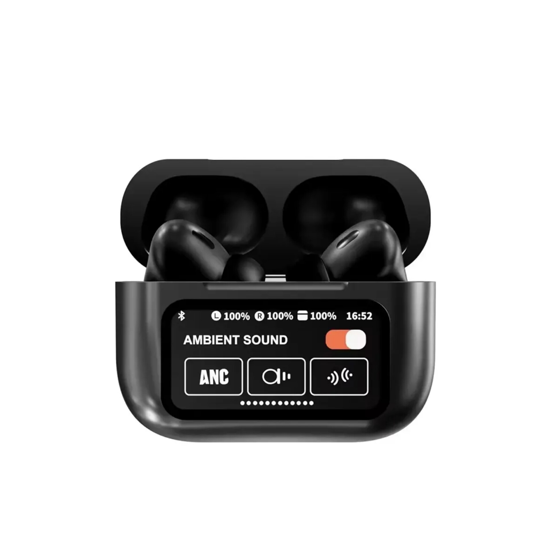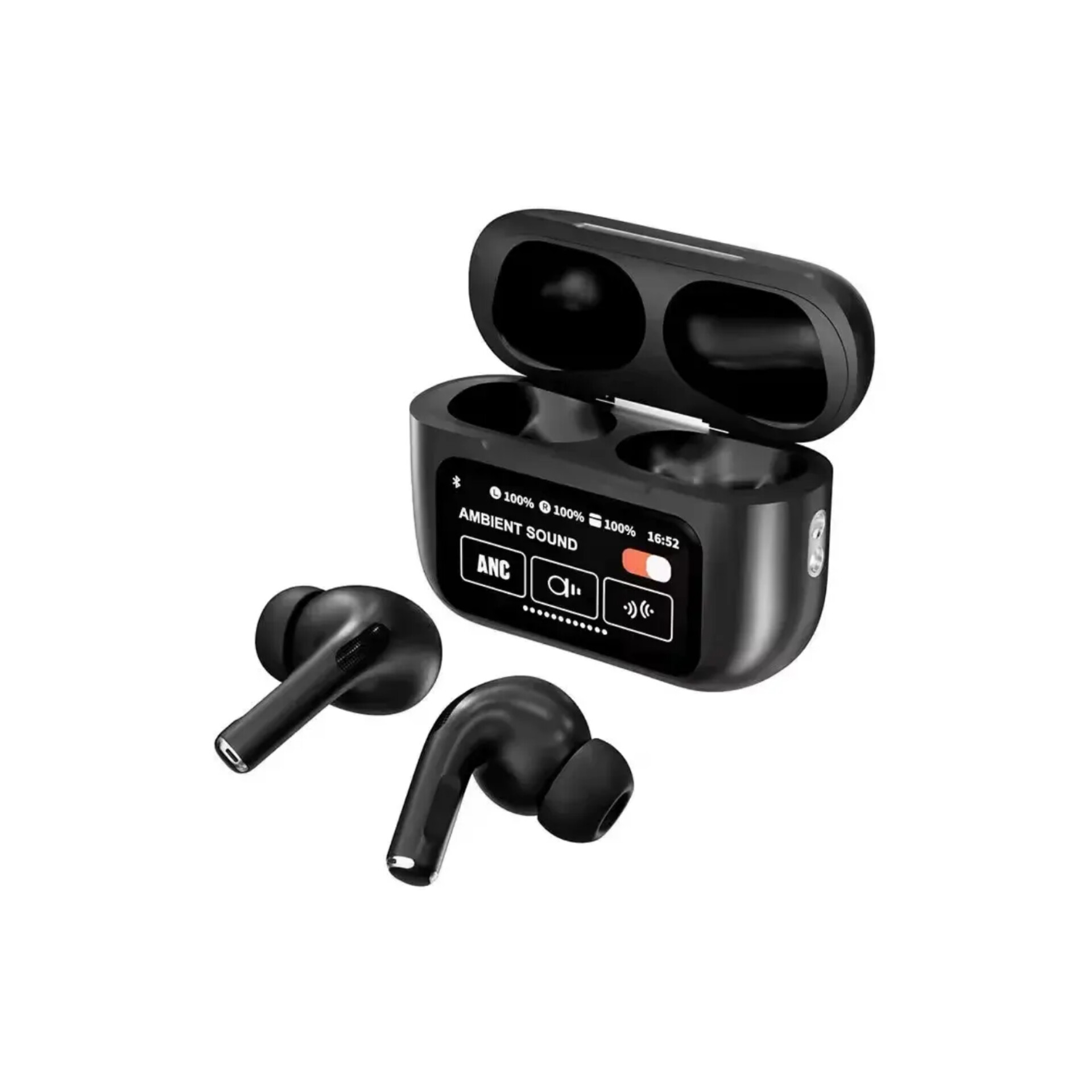 مشخصات فنی ایرپاد پرو ۲ مشکی با نمایشگرطراحی و ساخت- رنگ: مشکی مات با طراحی ارگونومیک- وزن هر گوشی: ۵.۳ گرم- سریهای سیلیکونی در چهار سایز مختلف برای تناسب بهتر با گوش- مقاومت در برابر تعریق و پاشش آب (استاندارد IPX4)کیس شارژ- دارای نمایشگر دیجیتال برای نمایش وضعیت باتری و حالتهای عملکرد- پورت شارژ: USB-C- پشتیبانی از شارژ بیسیم- نشانگر LED برای وضعیت شارژکیفیت صدا و قابلیتهای صوتی- تراشه H2 اپل برای پردازش سریع صدا و مدیریت انرژی- صدای با کیفیت بالا با باس عمیق و جزئیات دقیق- پشتیبانی از Spatial Audio (صدای فراگیر سهبعدی)- Adaptive EQ برای تنظیم خودکار صدا بر اساس شکل گوشنویز کنسلینگ و حالت شفافیت- نویز کنسلینگ فعال (ANC) با قابلیت Adaptive Transparency- حالت Ambient Sound برای شنیدن صدای محیط بدون برداشتن هدفونکنترل و تعامل- کنترل لمسی روی ساقه هدفون برای مدیریت موسیقی، تماسها و حالتهای صدا- پشتیبانی از فرمان صوتی Siri- حسگرهای حرکتی برای تشخیص قرارگیری در گوش و توقف خودکار موسیقیاتصال و سازگاری- بلوتوث نسخه ۵.۳- سازگار با دستگاههای اپل و پشتیبانی از Auto Switch- عدم پشتیبانی کامل از برخی قابلیتها در دستگاههای اندرویدیعمر باتری- تا ۶ ساعت پخش موسیقی با یک بار شارژ (در حالت ANC روشن)- تا ۳۰ ساعت پخش موسیقی با استفاده از کیس شارژ