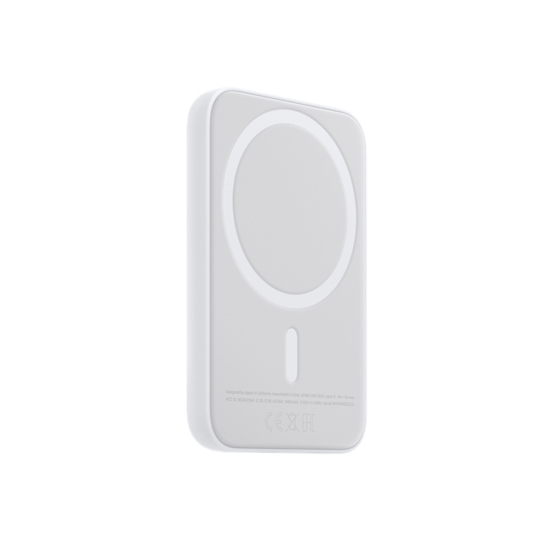 مشخصات فنی پاوربانک Apple MagSafe Battery Packبرند: Apple  مدل: MagSafe Battery Pack  نوع اتصال: مغناطیسی (MagSafe)  ظرفیت اسمی: 1460 میلیآمپر ساعت  نوع شارژ: بیسیم (Wireless Charging)  توان خروجی: تا 15 وات (در حالت اتصال به آداپتور)  پورت شارژ: Lightning  سازگاری: آیفونهای سری 12 و بالاتر (iPhone 12/13/14/15)  ابعاد: 96.6 × 64.1 × 11.13 میلیمتر  وزن: حدود 115 گرم  جنس بدنه: پلیکربنات با طراحی مینیمال  رنگ: سفید  ویژگیهای ایمنی: مدیریت هوشمند شارژ، محافظت در برابر گرمای بیش از حد و اتصال کوتاه  قابلیت شارژ همزمان: امکان شارژ همزمان آیفون و پاوربانک از طریق اتصال به آداپتور  نمایش وضعیت شارژ: نمایش میزان شارژ از طریق انیمیشن روی صفحه آیفون  استانداردها: CE، FCC، RoHS