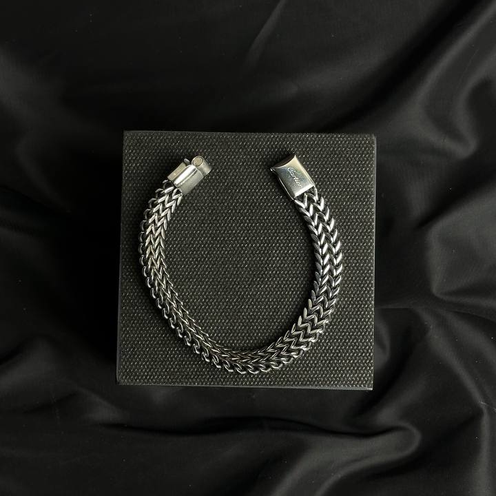 نام محصول:  دستبند مگنتی مردانه مدل Titanجنس:  استیل ضد زنگ با روکش مات و پرداخت دقیقطراحی:  بافت زنجیری کلاسیک با قفل مگنتی مخفی و حکاکی برند Titanرنگ:  نقرهای تیره با جلوه صنعتی و مدرننوع قفل:  مگنتی با ایمنی بالا و باز و بسته شدن آسانابعاد:  عرض زنجیر: ۱۰ میلیمتر  طول دستبند: ۲۱ سانتیمتر (مناسب برای اکثر سایزهای مچ مردانه)ویژگیها:  - مقاوم در برابر رطوبت و تعریق  - مناسب برای استفاده روزمره و استایل رسمی  - بدون حساسیت پوستی  - بستهبندی شیک و مناسب هدیهکاربرد پیشنهادی:  مناسب برای استایلهای مینیمال، رسمی، یا ترکیب با اکسسوریهای مشکی و چرمیکشور سازنده:  طراحی اختصاصی با الهام از برندهای اروپایی، مونتاژ شده