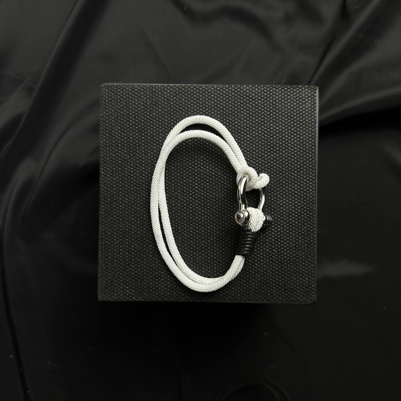 مشخصات دستبند کنفی با قفل فلزی شاکلدار- نوع محصول: دستبند طنابی با طراحی مینیمال و قفل فلزی- متریال بند: طناب بافتهشده از نخ پلیاستر مقاوم- رنگ بند: سفید مات- نوع قفل: شاکلدار فلزی با پین پیچی جهت ایمنی بیشتر- جنس قفل: آلیاژ فلزی ضدزنگ با پرداخت نقرهای- سبک طراحی: ساده، مدرن، مناسب استایل روزمره و نیمهرسمی- ابعاد: قابل تنظیم برای مچهای متوسط تا بزرگ- وزن تقریبی: سبکوزن، مناسب استفاده طولانیمدت- محل تولید: مونتاژ شده با استانداردهای اروپایی