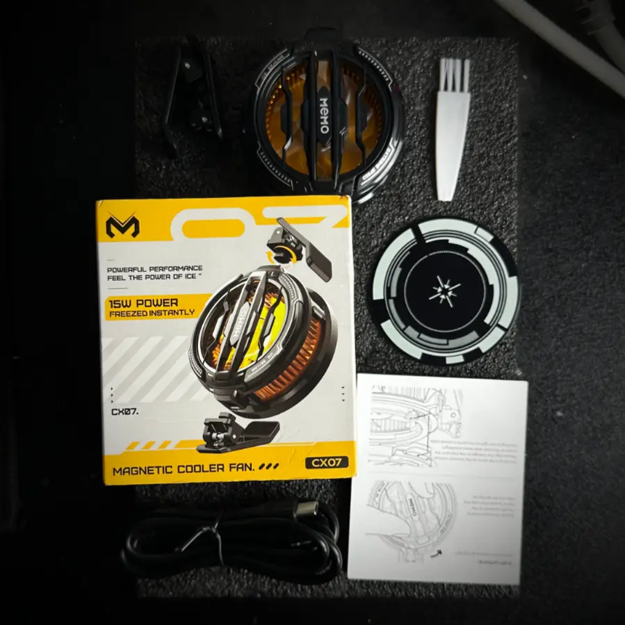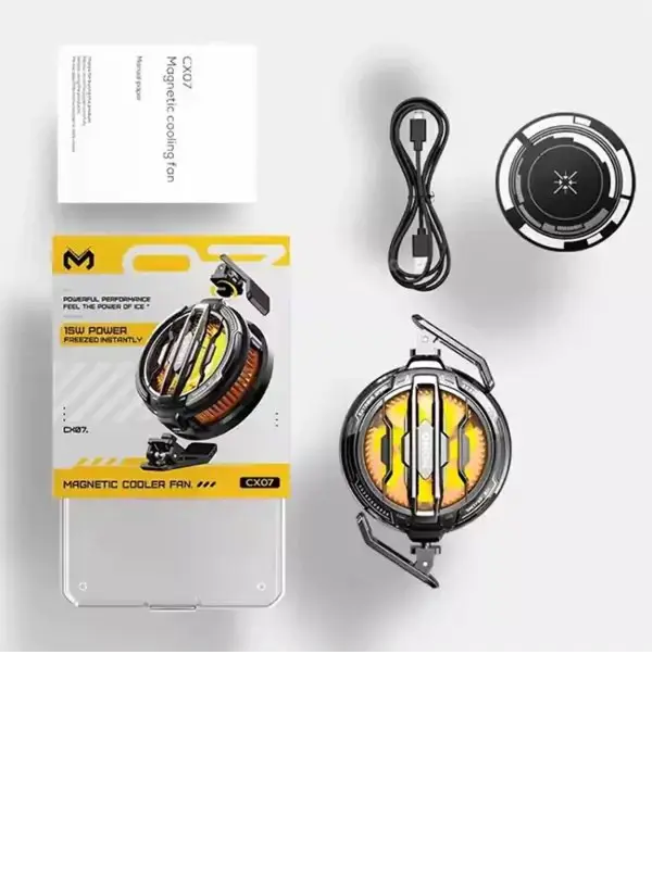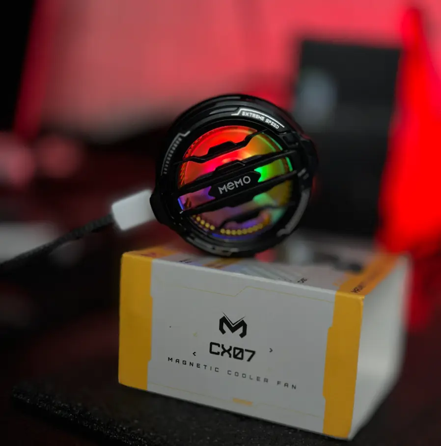 ظاهر این محصول فضایی است و با بهره مندی از RGB جذاب حس فوق العاده ای هنگام بازی به شما میدهد. یک این محصول شامل فن خنک کننده یک کابل شارژ تایپ C به همراه فرچه مخصوص تمیز کردن هیت سینک و پره ها و همراه دو عدد گیره و دفترچه راهنمای استفاده از آن میباشد CX۰۷ از کمپانی مشهور و به نام MEMO محصولی پر قدرت و با کیفیت است که میتوان از آن بر روی تمامی مدلهای گوشیهای موبایل و تبلت ساخت برندهای اپل سامسونگ شیائومی و ... فارغ از مدل گوشی استفاده کرد. متریال پلاستیک ABS و آلومینیوم Alloy سرعت چرخش فن ۶۰۰۰ دور در دقیقه توان ۱۵ وات